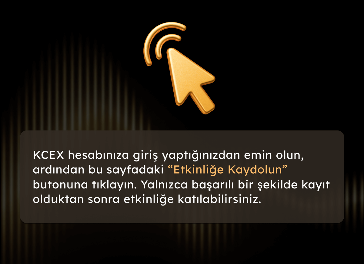 Belirlenen KOL davet linki üzerinden kayıt olunmalıdır. Ödülleri alabilmek için KYC doğrulaması gereklidir.