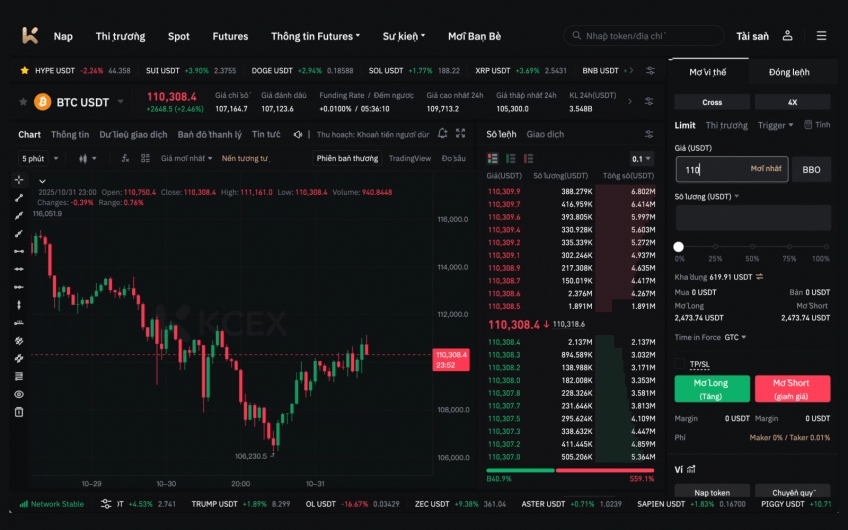Phí Spot 0%, phí Futures Maker 0%, phí Futures Taker 0.01%